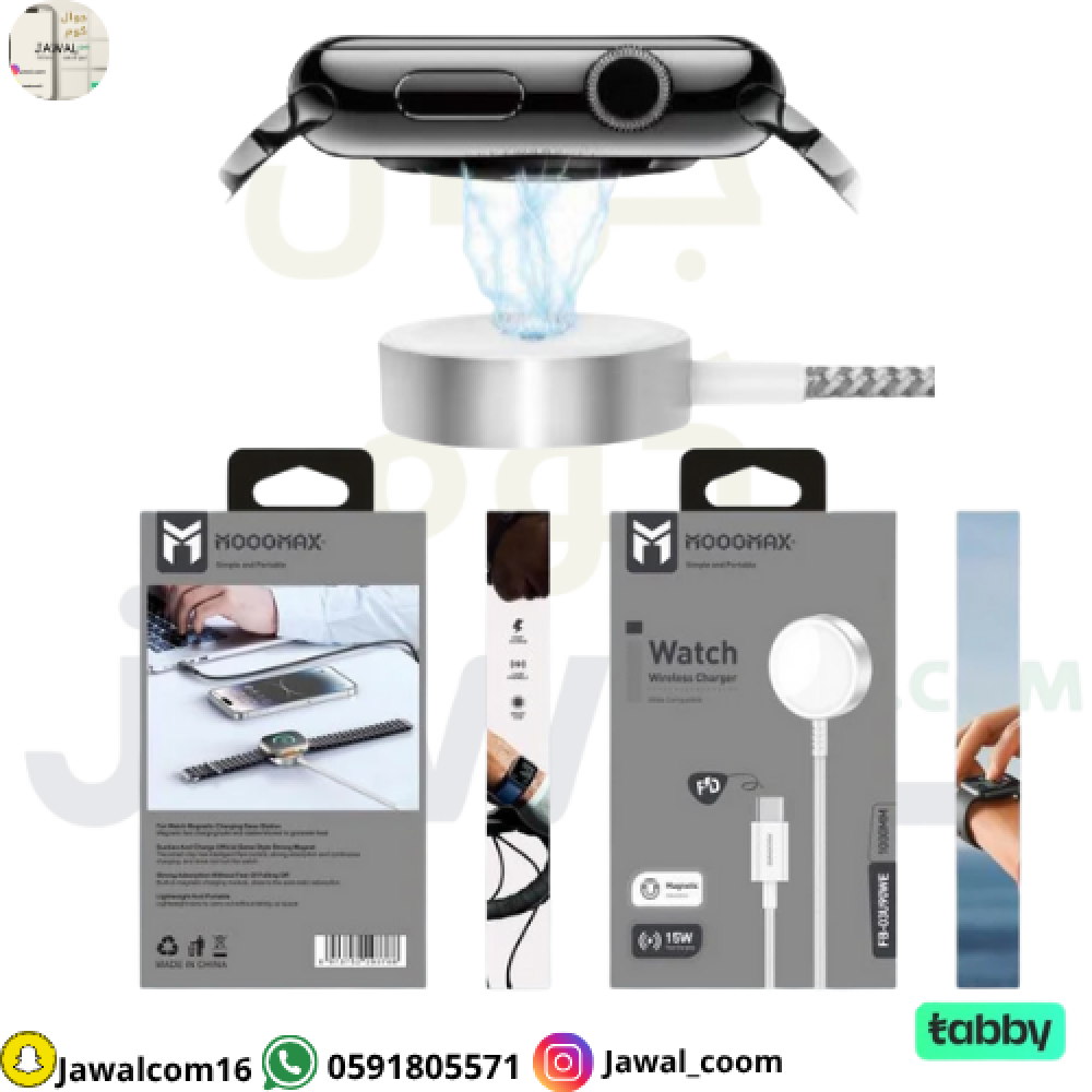 استمتع بتجربة شحن ساعتك بكل سهولة وأمان مع شاحن الساعة المغناطيسي من موج ماكس. تصميم مبتكر يضمن وصول الطاقة بسلاسة لساعتك دون الحاجة إلى أسلاك متشابكة أو توصيلات معقدة.